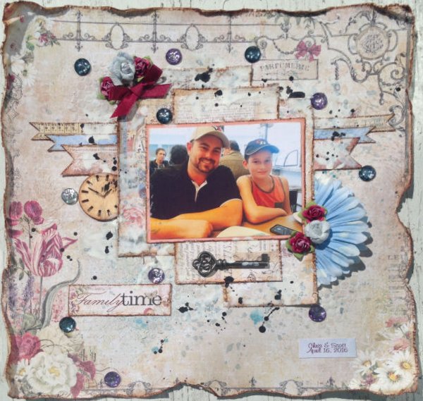 I love this photo of my son and grandson taken back in April of this year. I just new I wanted to scrap it! I used quite a few layers, using the banners and rectangles and of course distressing. I used some blue and wine colored small flowers, the wine colored ones bring out the wine color in the papers. I'm also trying to use more misting and inking on my layouts. I love how the design team ladies at Swirlydoos use the mists and dripping, so I'm doing it in baby steps as I always worry that I'll ruin the layout, lol. So here's the layout, click on it to see a larger photo. I'd love to hear your comments!